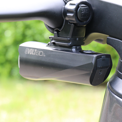 StVZO 80Lux rechargeable headlight mounts under the handlebar.