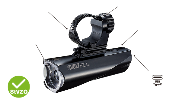Compact, rechargeable StVZO headlight with 45Lux illumination.