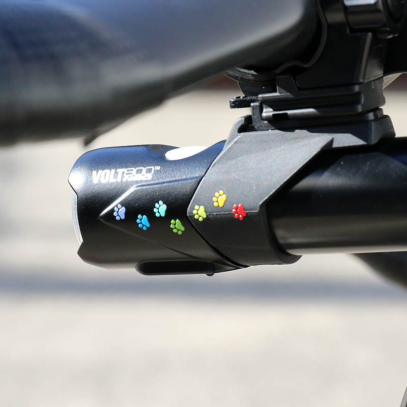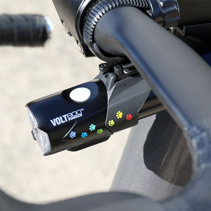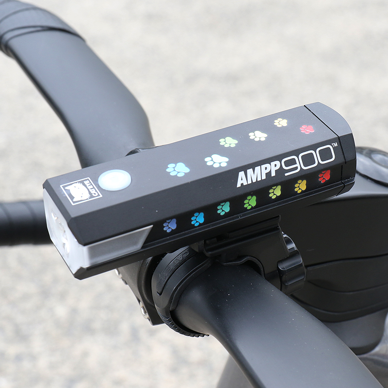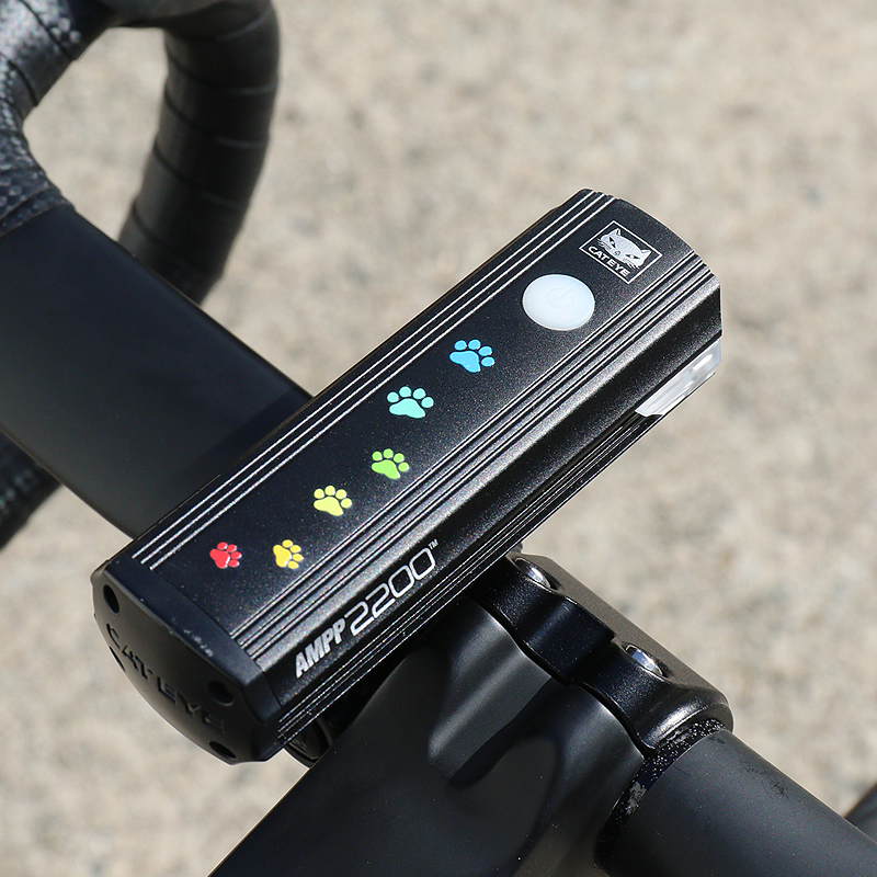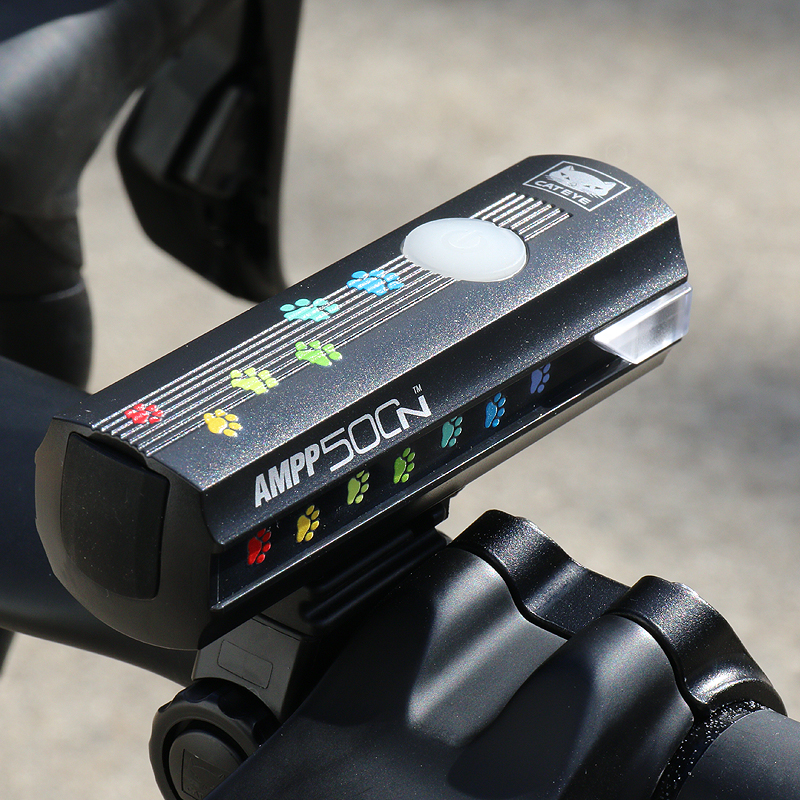 カラフルな猫の足跡がプリントされた充電式ライトAMPP900を22台限定