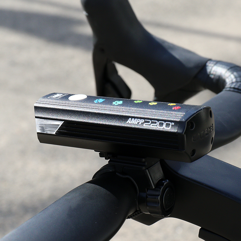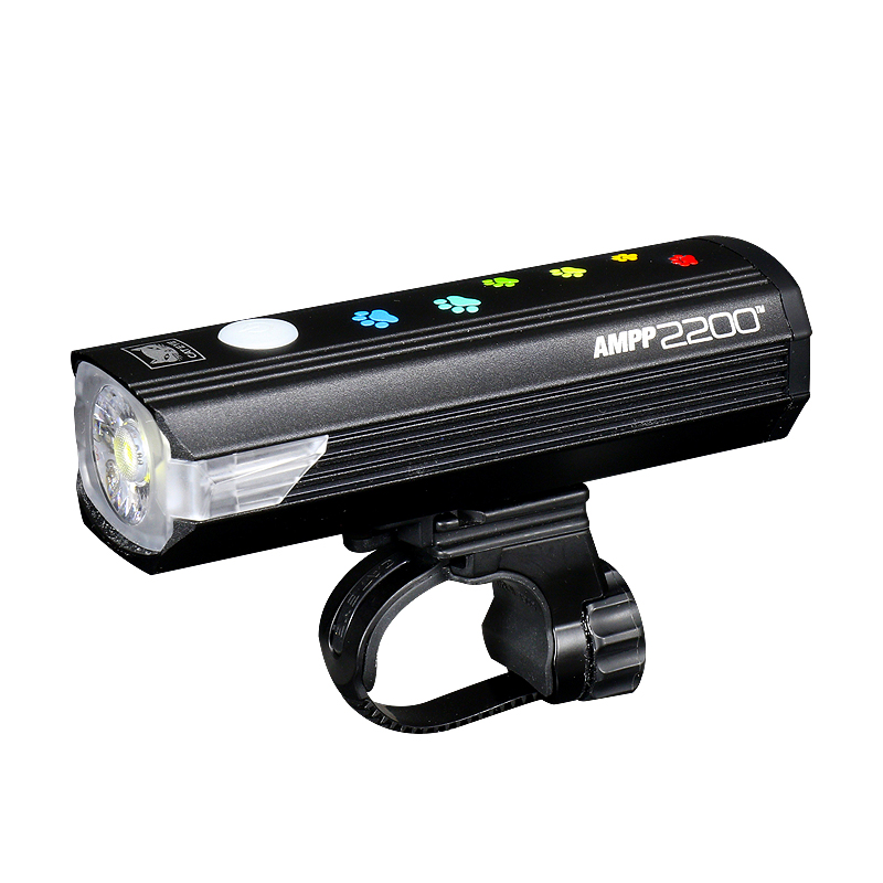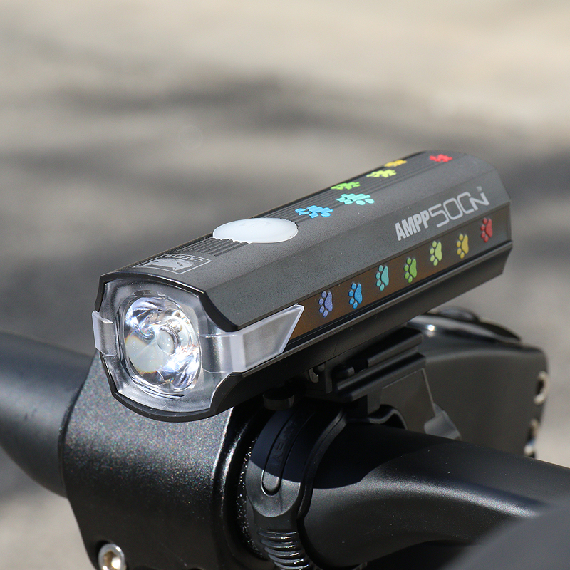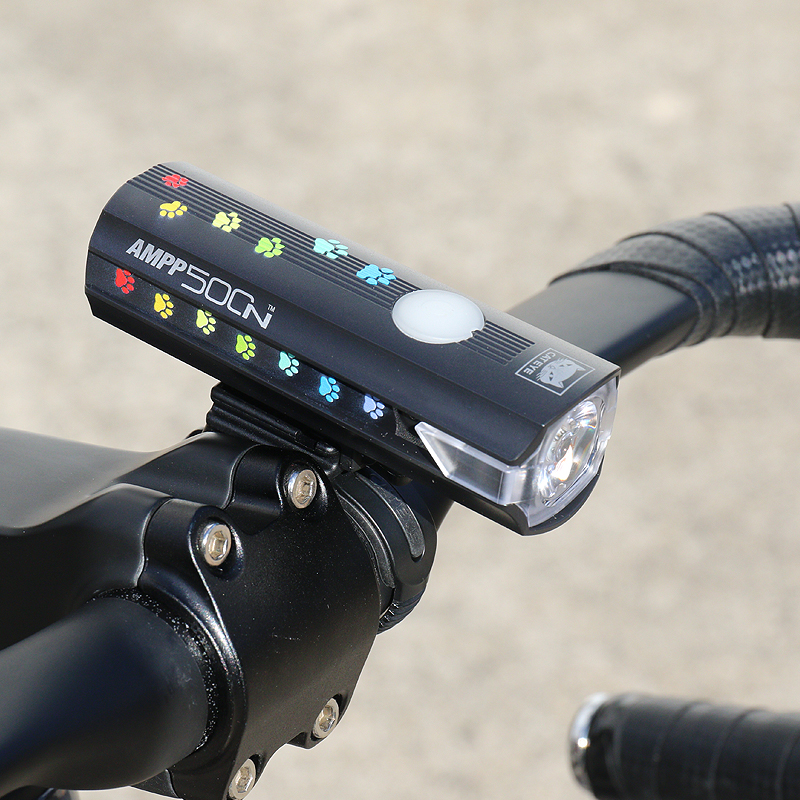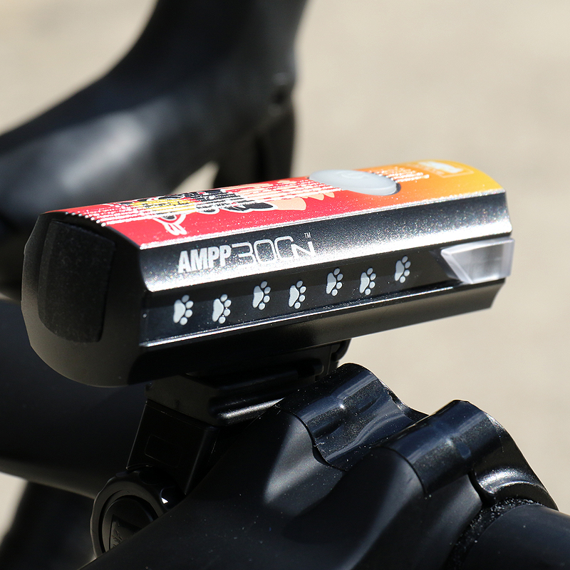 カラフルな猫の足跡がプリントされた充電式ライトAMPP900を22台限定