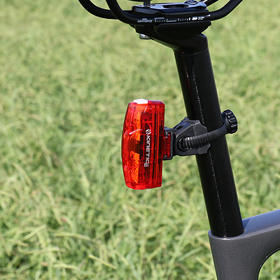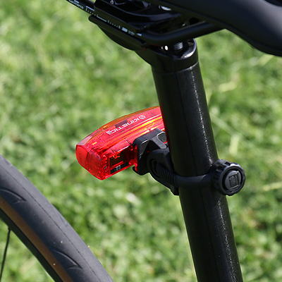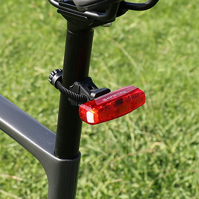 - 自転車の減速を感知するとモードに関係なく約2.5秒ハイモードの2倍の明るさで点灯するブレーキモード搭載
