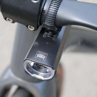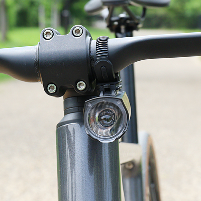 StVZO 70Lux rechargeable headlight mounts under the handlebar.