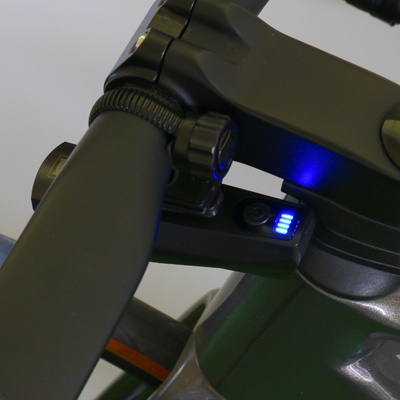 StVZO 80Lux rechargeable headlight mounts under the handlebar.