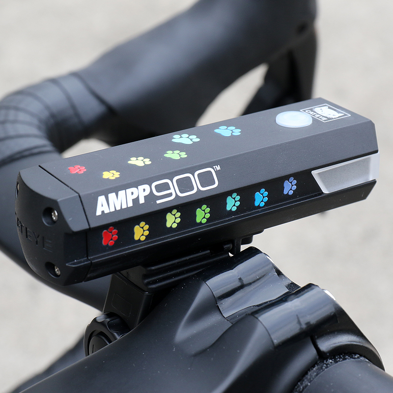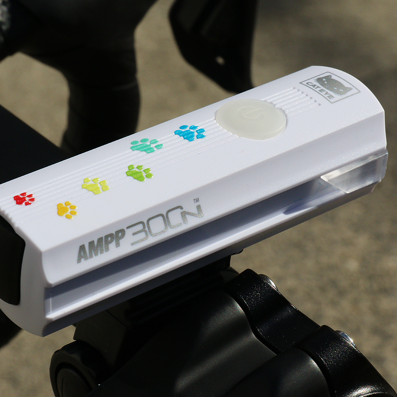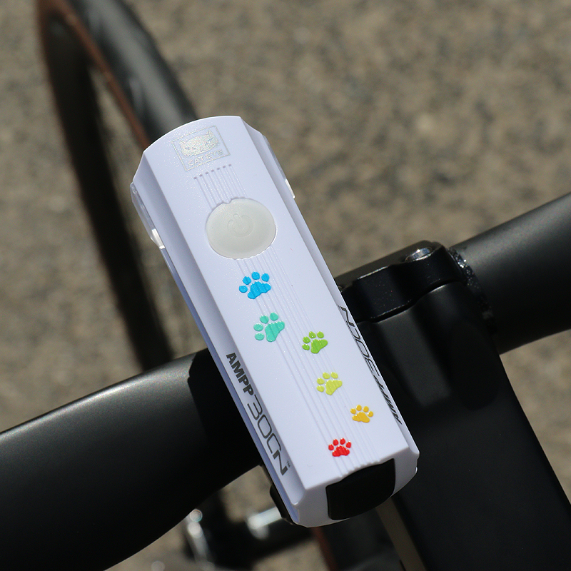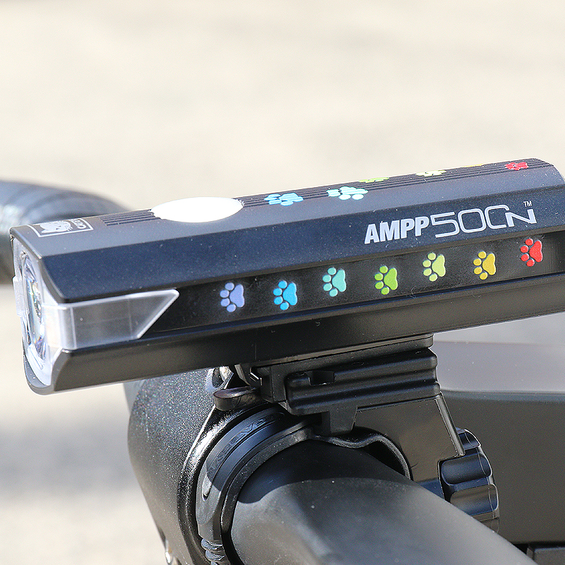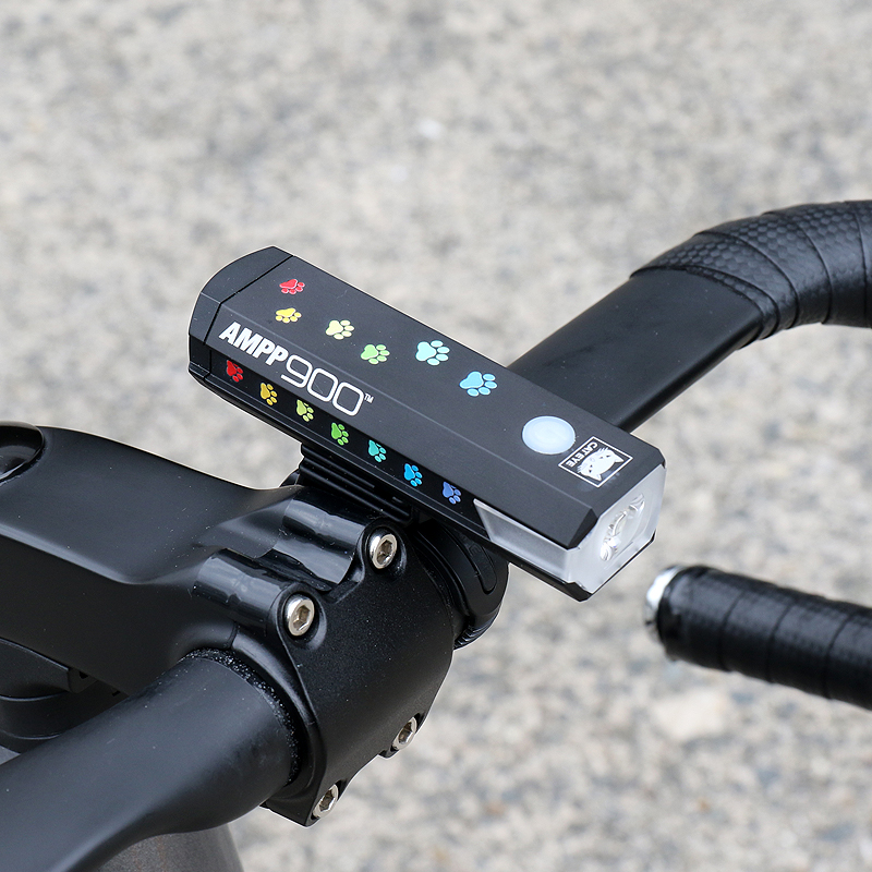 カラフルな猫の足跡がプリントされた充電式ライトAMPP900を22台限定