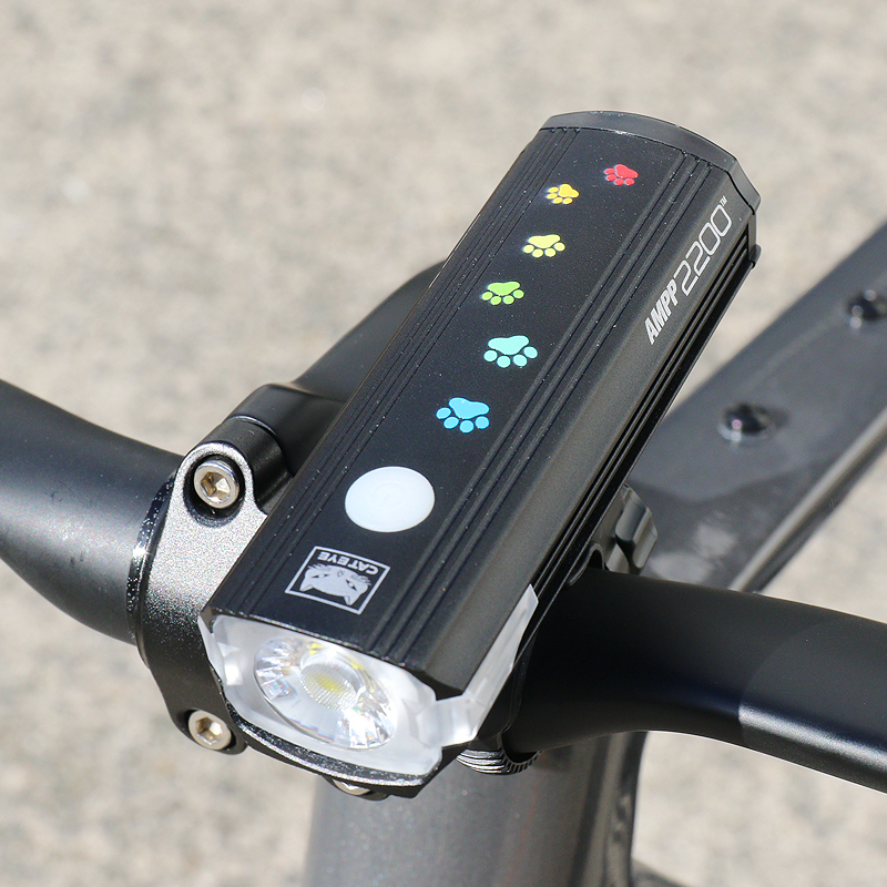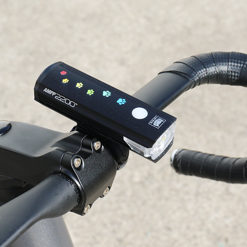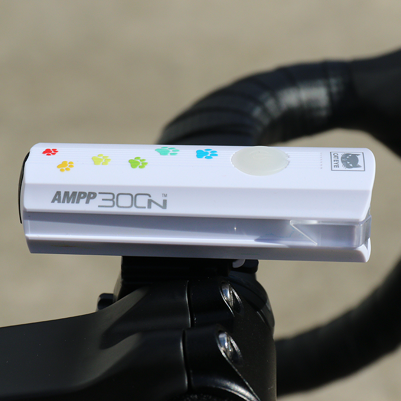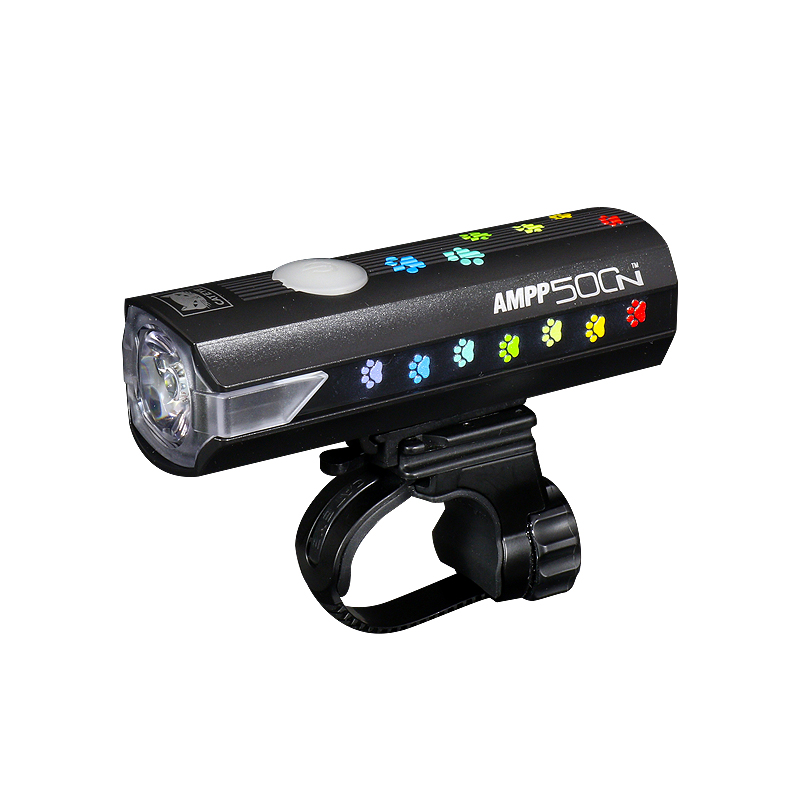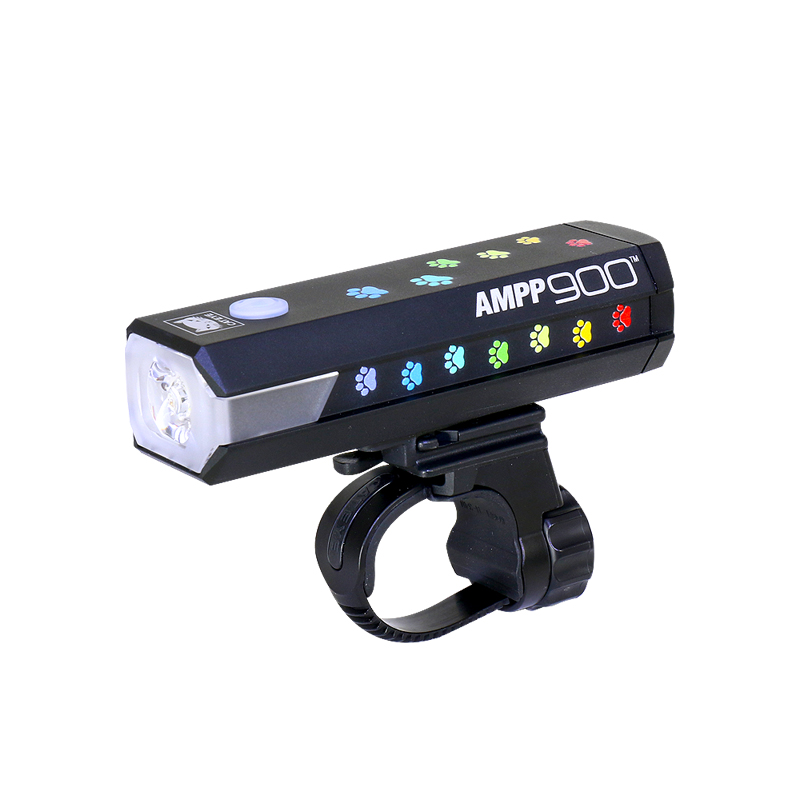 カラフルな猫の足跡がプリントされた充電式ライトAMPP900を22台限定