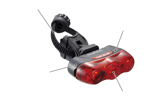 道交法上、点滅は補助灯としての使用に限定し、リアリフレクター(赤色)と併用してください。