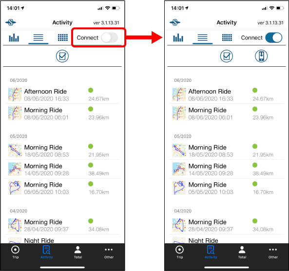 1. Launch Cateye Cycling™ and set [Connect] to ON.