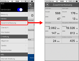 Sie können die Gesamtwerte für alle in Cateye Cycling™ gespeicherten Aktivitäten und die Maximalwerte zu einzelnen Fahrten prüfen.
