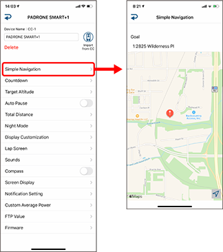 1. From [PADRONE SMART+] or [Quick Set], tap [Simple Navigation].
