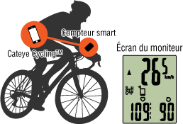Les informations sur le capteur Smart sont remplacées par les données de Cateye Cycling™ lorsque le compteur Smart se connecte au smartphone.