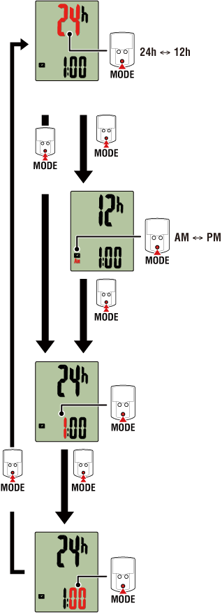 (l'icône d'horloge) clignote, puis appuyez sur MODE pendant 2 secondes.
