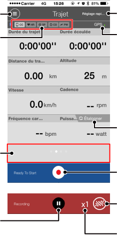 À partir de cet écran, vous pouvez démarrer, mettre sur pause et terminer une mesure.