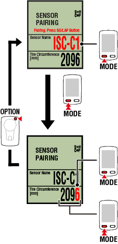 • Réglez la circonférence du pneu pour chaque capteur. La valeur par défaut est 2096 mm (700x23c).