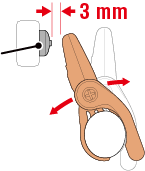 (1) Inclinez le capteur pour que l'écart entre l'aimant de cadence et la zone du capteur de cadence soit d'environ 3 mm, puis fixez fermement le capteur avec les attaches en nylon.