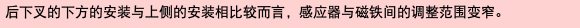 注意 后下叉的下方的安装与上侧的安装相比较而言,感应器与磁铁间的调整范围变窄。
