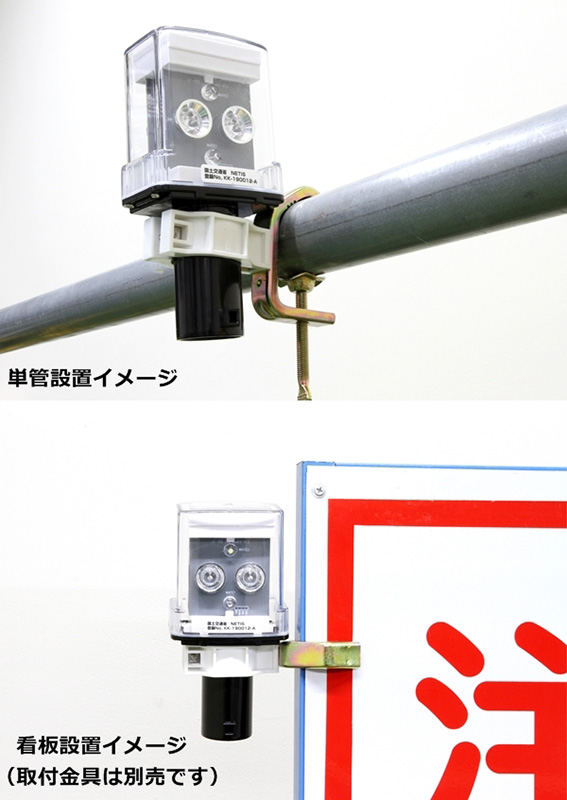 ■電波時計を利用し、視認性の高い拡散LED赤・白を交互に複数台同期点滅させ注意を促します。