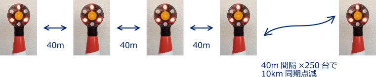 ■機器同士で通信を行うことで、場所を問わず同期点滅します。
